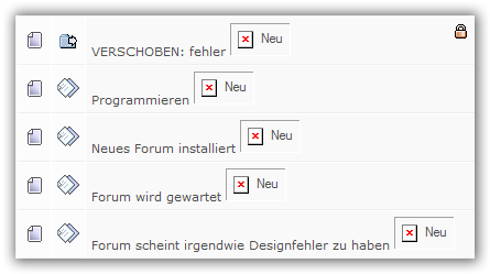 so wie es ausschaut fehlt bei dir im Forum die entsprechende Bilddatei für neue Beiträge (siehe Screenshot)